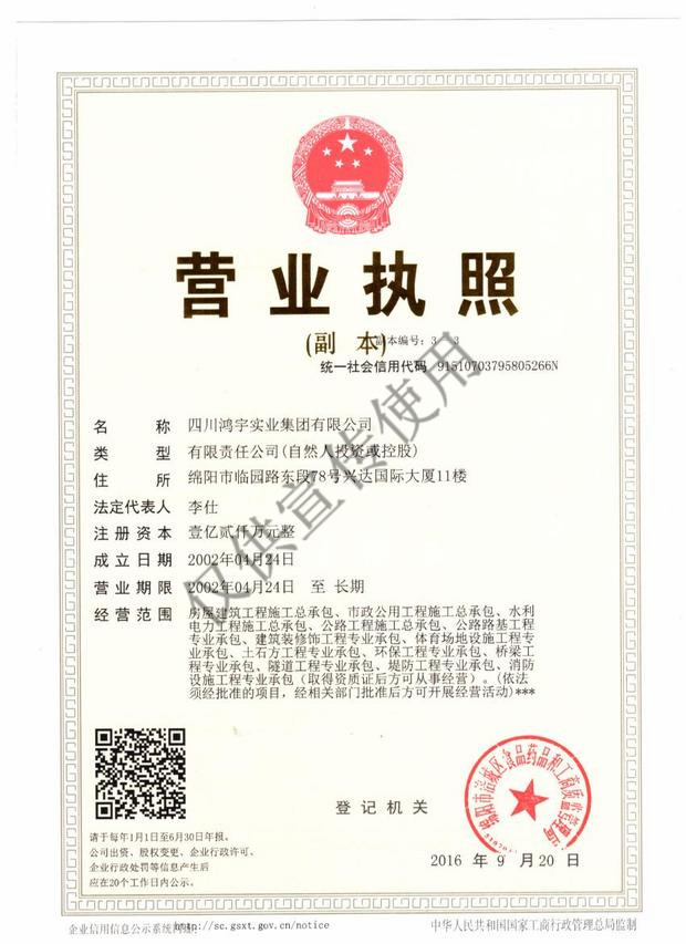 近年来,公司坚持以市场为导向,根据社会需求提供独具特色的高质量产品,先后完成各类房屋建筑、装饰装修、桥梁水利、市政建设等工程100余项,其代表工程有鸿宇商业广场、鸿宇中心、科技城电梯产业园、郁金香生活广场、建设银行综合楼、成都教育学院教学大楼、盐亭县世行贷款一期、二期项目、盐亭县嫘祖大道等。工程合格率100%,履约率100%,优良率93%,满意率96%。公司目前正在着力打造绵阳市游仙区东津路8号棚户区改造项目,并与蓝城集团合作在绵阳市涪城区杨家镇共同打造中国(绵阳)国际康养小镇。